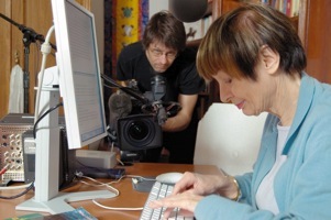Dreharbeiten am Schreibtisch von Federica de Cesco. Im Hintergrund. Kameramann Daniel Leippert.